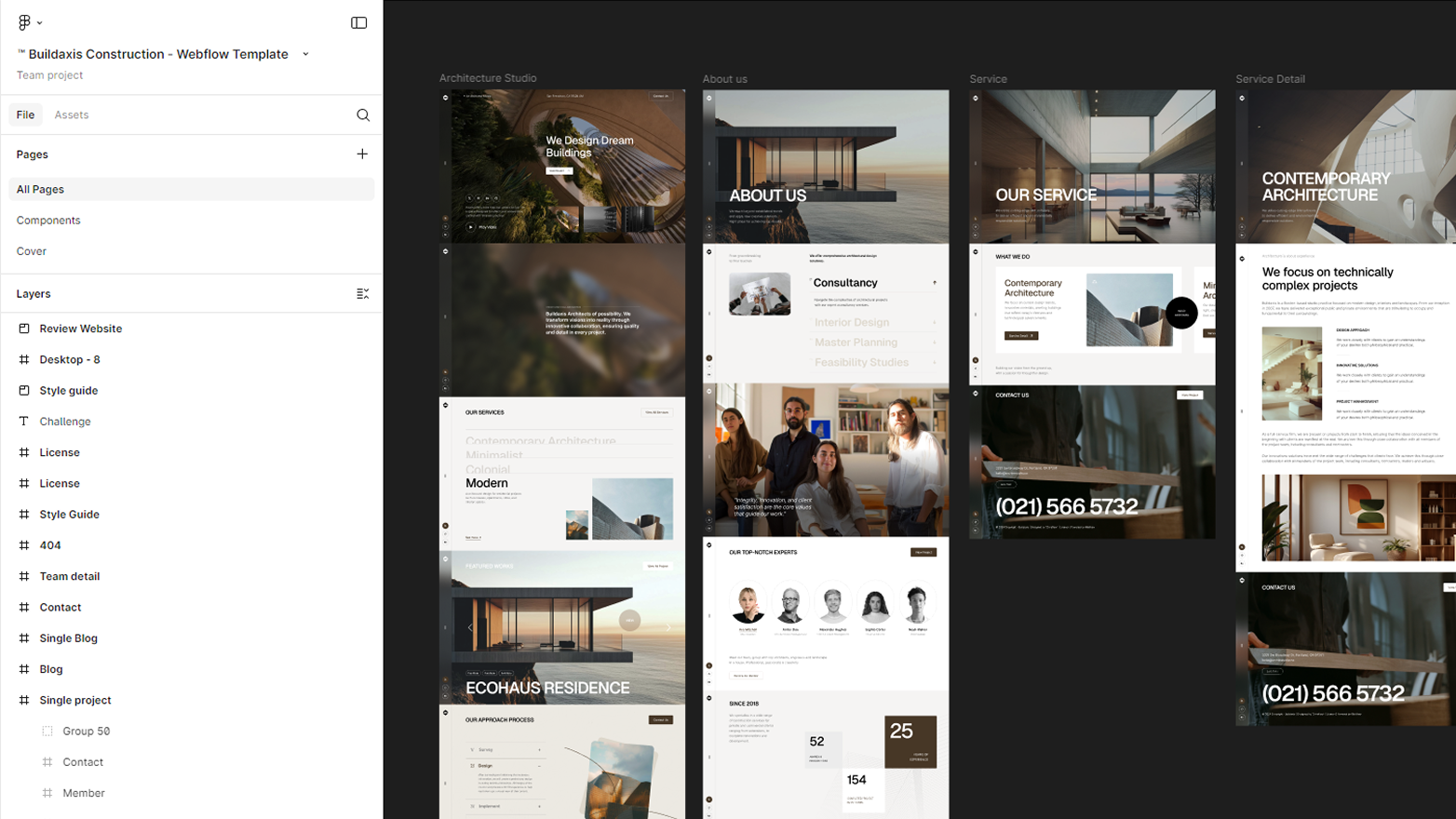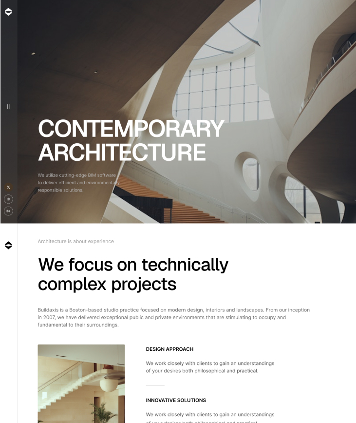 We know it’s easy to say, but it’s true. A lot of thought went into this template. Buildaxis was designed by an award-winning designer, with layouts carefully crafted to suit the industry through thorough research.